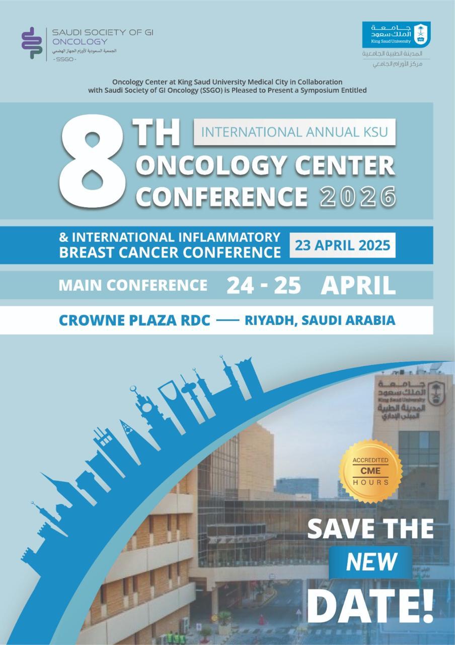 The Qassim Oncology Conference 2026, hosted by the Saudi Society of GI Oncology, will convene leading experts on January 30–31 at Mövenpick Hotel, Qassim, to explore cutting-edge advancements in cancer care and GI oncology. Attendees will benefit from CME-accredited sessions and collaborative insights.